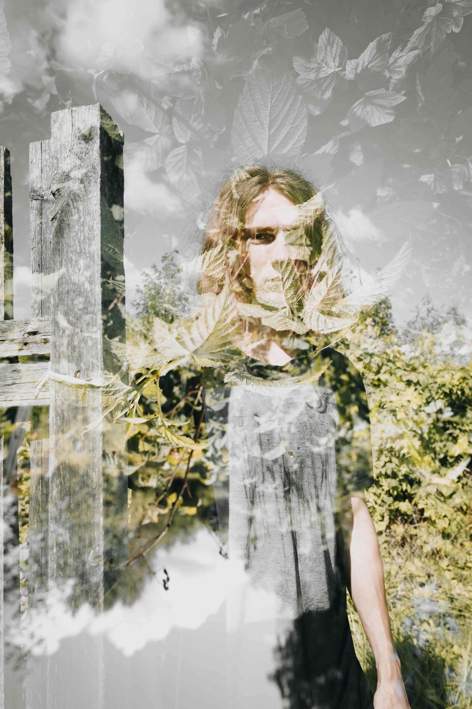 Pilt sündis läbi toreda fotorännaku koos sõpradega. Seiklesime Tartu Hiinalinnas ning tutvusime selle omapärase meeleoluga. Kuna mulle pakub juba pikemat aega väga suurt huvi topeltsäritus ehk kahe kaadri üksteise peale pildistamine, olin peale esimesi katsetusi mulle paeluvas keskkonnas taaskord sellest kaasahaaratud. Tegelikkuses seisis modell metallist sillaraamil ning taustale jäid vanad garaažid. Teine foto, mis sai säritatud, on tehtud puuladvast ning need fotod koosluses loovad tähenduse, looduse imelisest jõust taastuda ja võimest üle võtta inimese poolt mahajäetud keskkond.